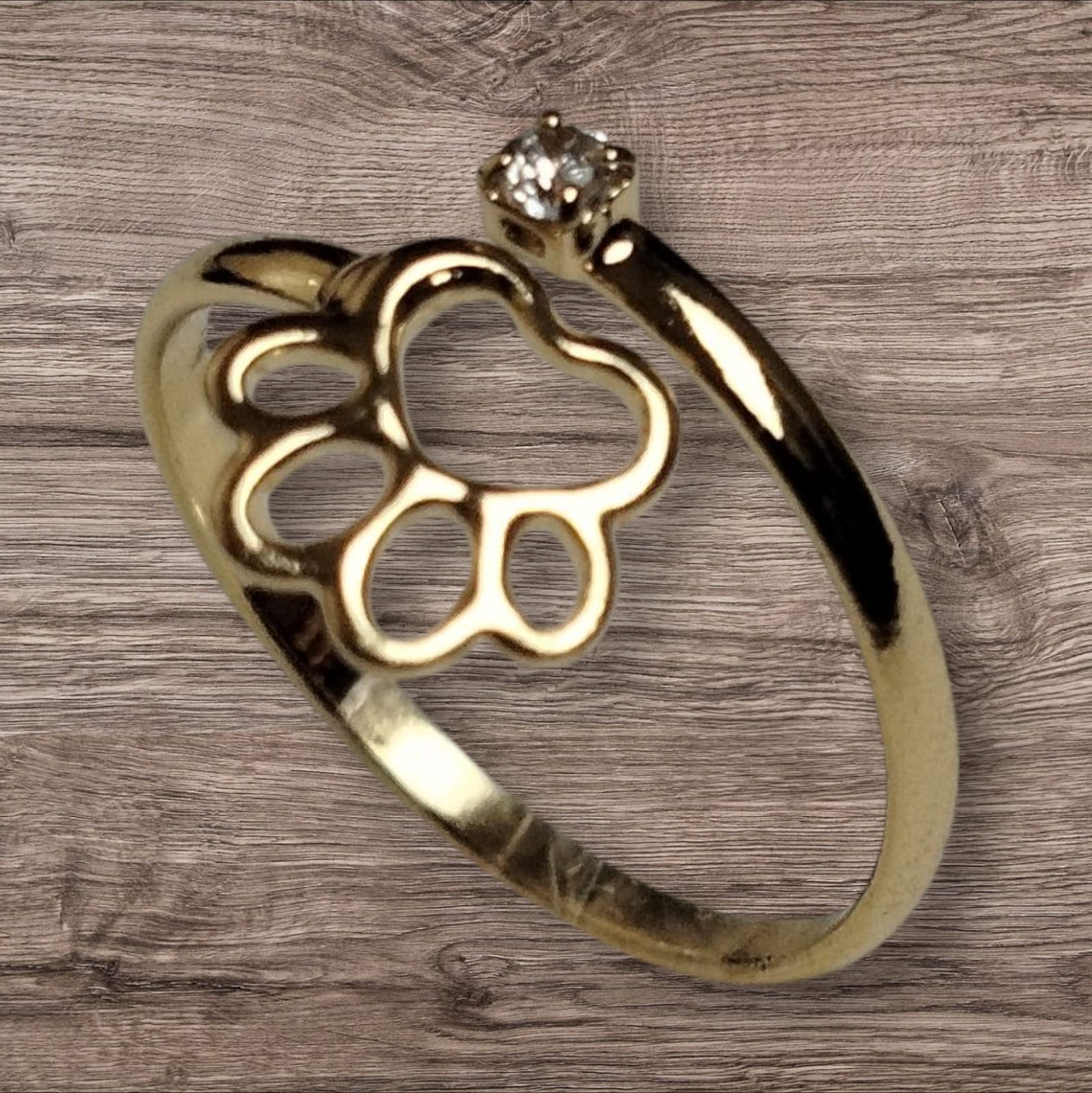 Este anel delicado e cheio de charme é banhado a ouro e apresenta um design fofo de uma patinha vazada. Uma zircônia cintilante está cuidadosamente cravejada na extremidade oposta, adicionando um toque de brilho e elegância. Perfeito para as amantes de animais de estimação que desejam expressar seu carinho de forma sutil e estilosa. Uma semijoia que encanta pela sua ternura e pelo seu toque de luz.