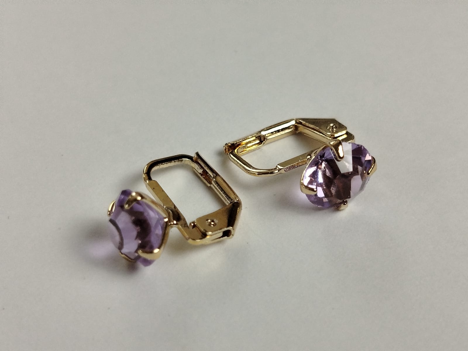 Este par de brincos apresenta uma elegante base dourada que realça uma pedra ametista facetada. A cor suave e os brilhos da ametista proporcionam um toque de sofisticação e delicadeza ao visual. Com um tamanho ideal para o dia a dia e um fecho seguro, são perfeitos para adicionar um toque de cor e elegância discreta ao seu look. Uma semijoia que combina o brilho do dourado com a beleza mística da ametista.