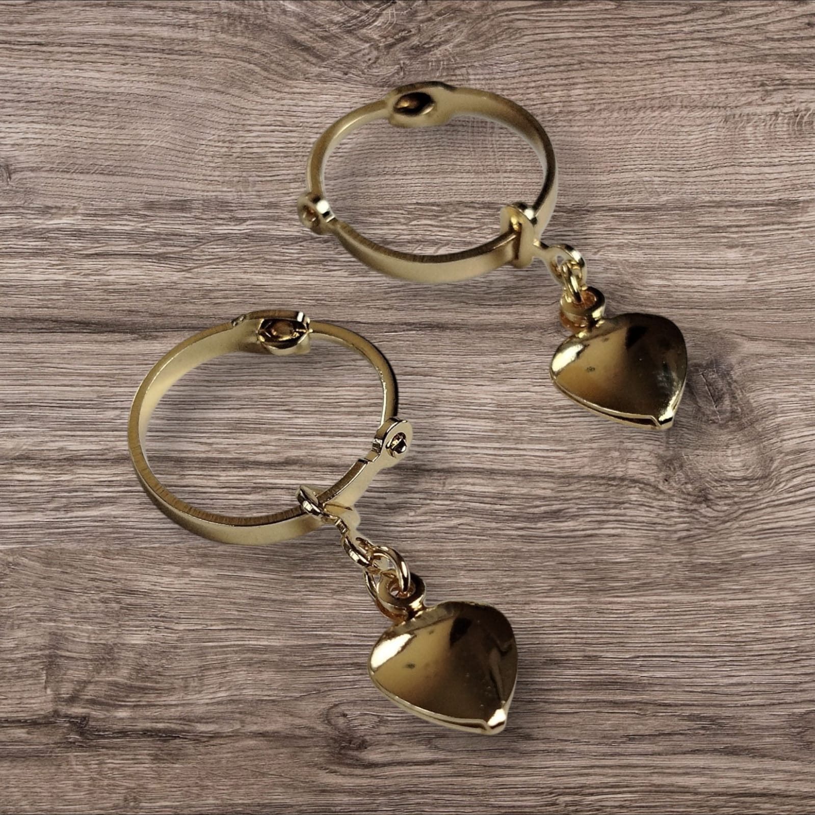 Este par de brincos apresenta um design moderno e romântico. As argolas douradas, com um toque minimalista, penduram delicadamente um coração brilhante. Perfeitos para adicionar um toque de charme e afeto ao seu visual, seja para o dia a dia ou para ocasiões especiais.
